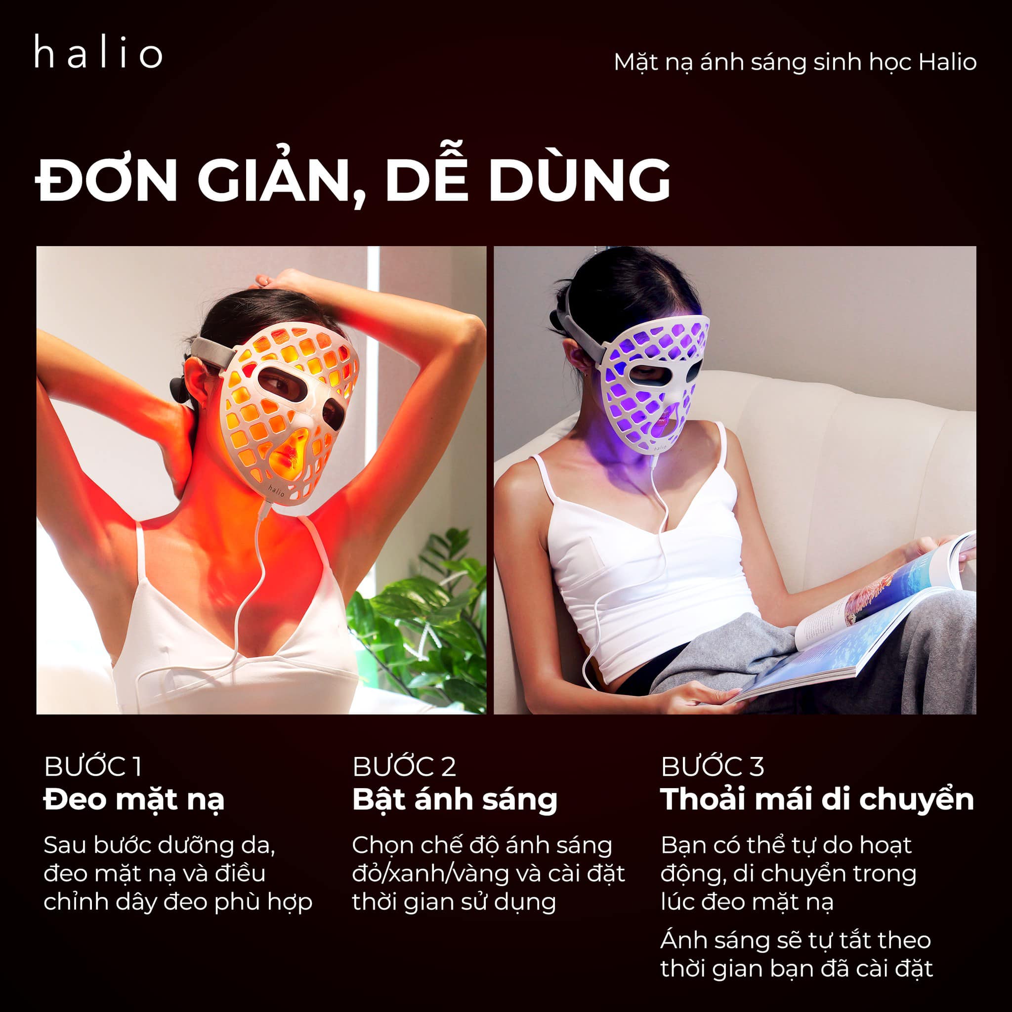 Mặt Nạ Ánh Sáng Sinh Học Halio PureGlow Ultralite Silicone LED Face Mask là thiết bị chăm sóc da công nghệ cao, ứng dụng liệu pháp ánh sáng sinh học với ba bước sóng chuyên biệt, giúp giảm nếp nhăn, làm sáng da và cải thiện rõ rệt tình trạng mụn. Với thiết kế di động, gập gọn cùng trọng lượng chỉ 93g, đây là chiếc mặt nạ LED nhẹ nhất hiện có trên thị trường, mang lại trải nghiệm làm đẹp thoải mái và hiệu quả dù bạn đang thư giãn hay làm việc.