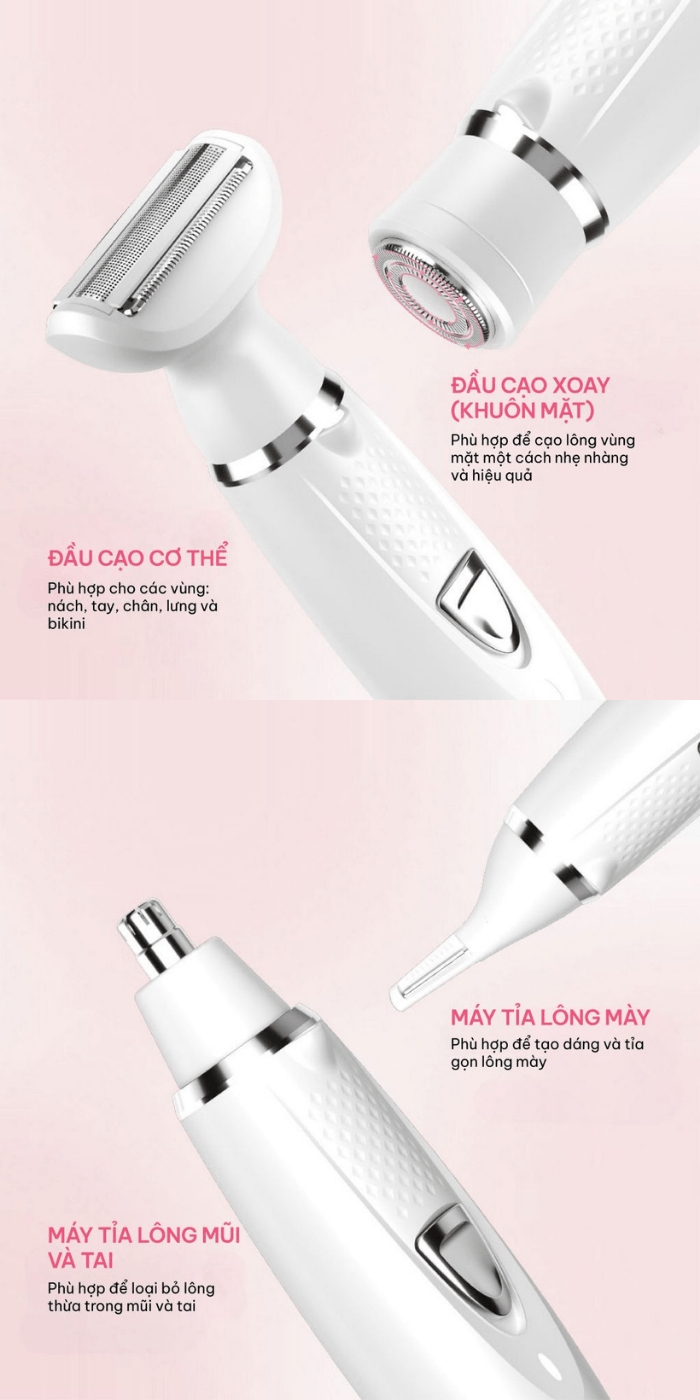 4 đầu cạo chuyên dụng, chăm sóc toàn bộ cơ thể