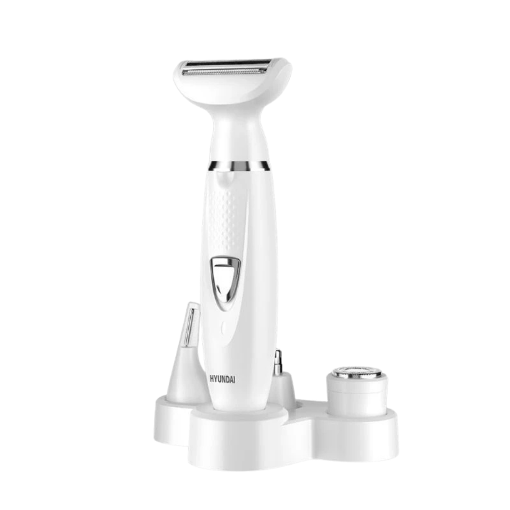 Máy Cạo Đa Năng 4 Trong 1 Hyundai PHT-089 là trợ thủ chăm sóc lông toàn diện dành cho phái đẹp hiện đại. Sản phẩm sở hữu thiết kế không dây tinh tế, dễ dàng mang theo khi đi công tác hoặc du lịch. Điểm nổi bật là 4 đầu cạo có thể tháo rời, đáp ứng nhiều nhu cầu khác nhau: cạo lông mặt, tỉa lông mày, tỉa lông mũi và cạo lông toàn thân.