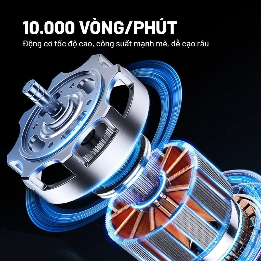 Động cơ 3W – 10.000 vòng/phút, cạo nhanh gọn và êm ái