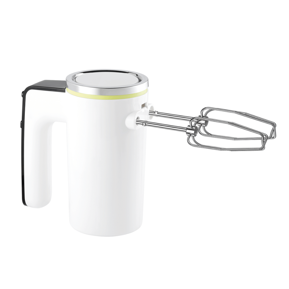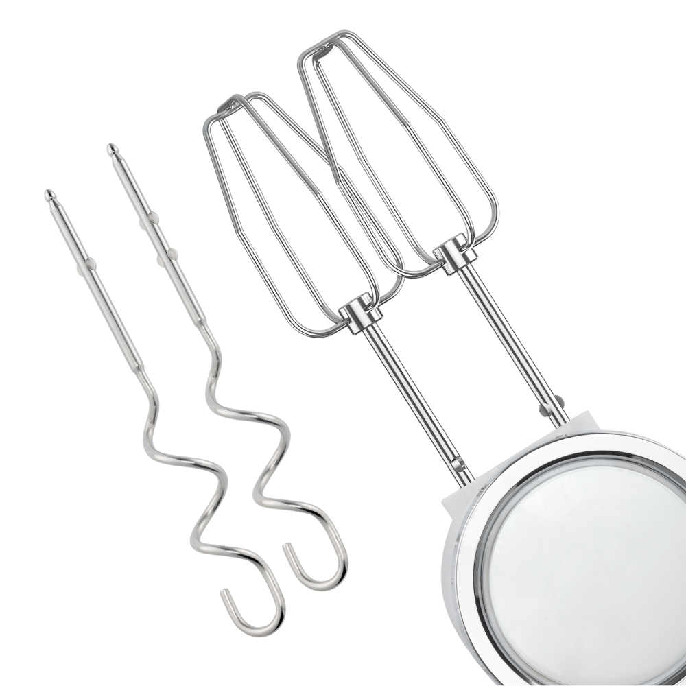 Sản phẩm được trang bị 2 que đánh trứng và 2 que trộn bột bằng thép không gỉ cứng cáp, chống oxy hóa tốt, đảm bảo an toàn vệ sinh thực phẩm và độ bền cao theo thời gian sử dụng.