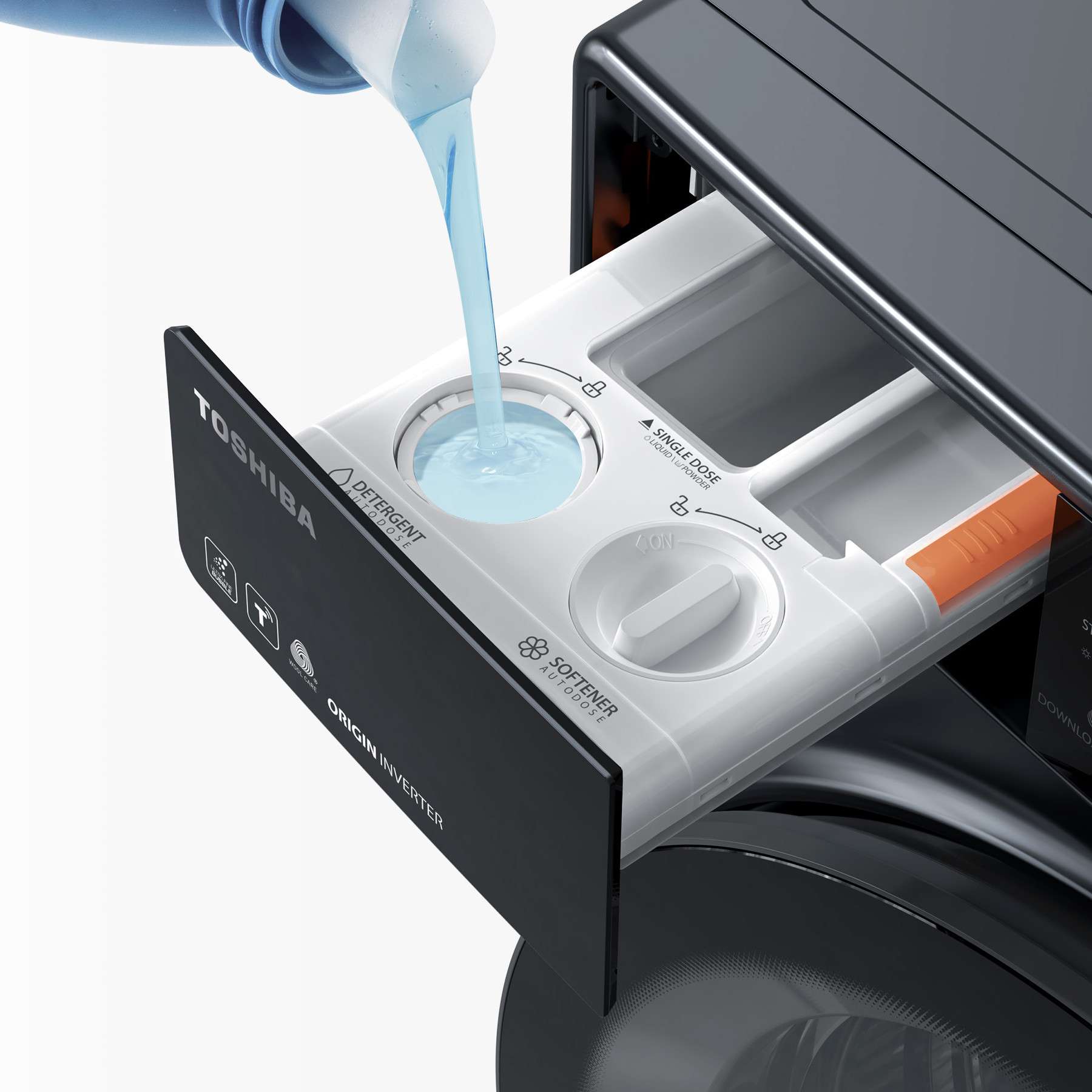Máy giặt sấy Toshiba TWD-T25BZU115MWV(MG) tự hào với công nghệ cấp nước giặt/xả thông minh SENSEDOSE. Máy sẽ tự động căn cứ vào lượng quần áo bạn cho vào để cung cấp lượng nước giặt và nước xả vải phù hợp, đảm bảo hiệu quả giặt sạch tối ưu và tiết kiệm chất giặt tẩy. Máy được thiết kế với 2 ngăn chứa nước giặt và xả riêng biệt, rất thuận tiện khi sử dụng.