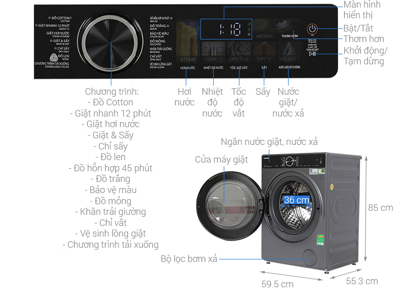 Dung tích: Giặt 10.5 kg - Sấy 7 kg