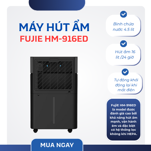 Trong điều kiện khí hậu nhiệt đới ẩm như Việt Nam, nấm mốc và độ ẩm cao là “kẻ thù thầm lặng” gây ảnh hưởng đến sức khỏe và tuổi thọ đồ nội thất. Máy hút ẩm FujiE HM-916ED ra đời như một “người bạn đồng hành” lý tưởng cho mọi gia đình, giúp cân bằng độ ẩm, làm sạch không khí và bảo vệ không gian sống của bạn một cách hiệu quả.