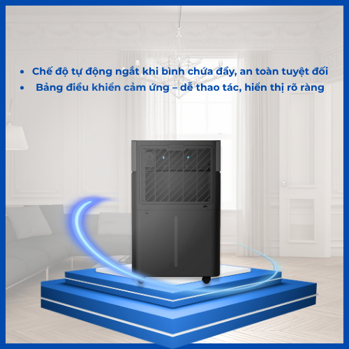 Công nghệ nén lạnh tiên tiến giúp máy hoạt động ổn định, tiết kiệm điện năng, đồng thời duy trì hiệu quả hút ẩm cao ngay cả trong điều kiện độ ẩm vượt ngưỡng.