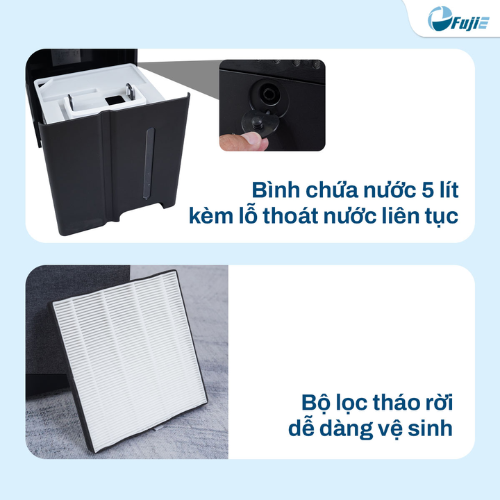 Nhờ đó, không gian của bạn không chỉ khô ráo mà còn trong lành, sạch khuẩn, giúp giảm nguy cơ viêm mũi dị ứng, hen suyễn và các bệnh về đường hô hấp. Bộ lọc dễ tháo lắp, có thể rửa và tái sử dụng nhiều lần, đảm bảo hiệu quả lọc bền vững.