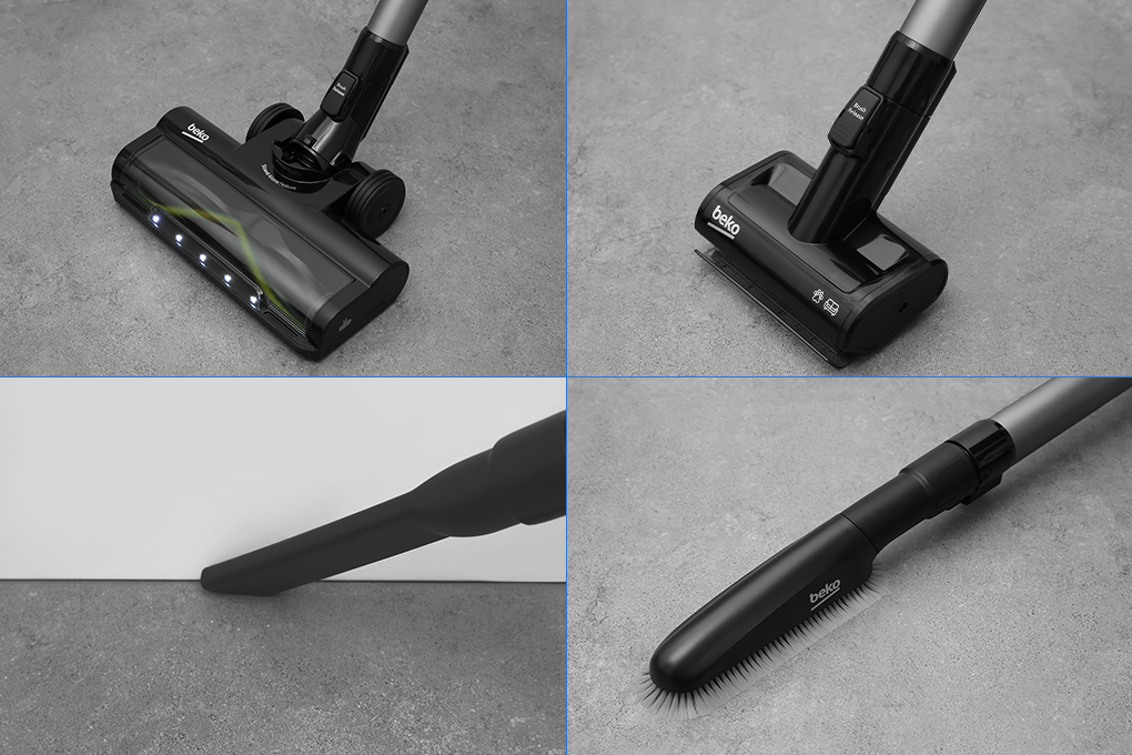 Máy hút bụi Beko không dây VRT 94929 VI đi kèm nhiều đầu hút khác nhau, phù hợp cho từng khu vực trong nhà: