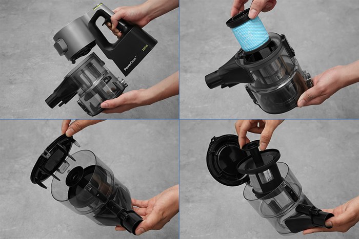 Dung tích hộp chứa bụi 0.9 lít cho phép bạn hút bụi liên tục mà không cần đổ rác quá thường xuyên. Khi cần vệ sinh, hộp chứa bụi có thể tháo rời dễ dàng.