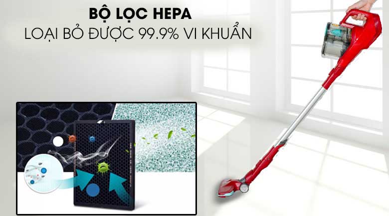 Máy sử dụng bộ lọc HEPA lọc thải đến 99.9% bụi bẩn và vi khuẩn, trả lại không khí sạch thoáng mỗi khi sử dụng. Điều này đặc biệt quan trọng để tạo môi trường sống lành mạnh cho gia đình của bạn.
