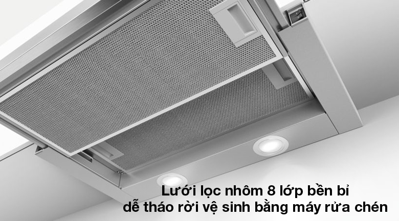 Tấm lọc bằng nhôm có 8 lớp ngăn chặn dầu mỡ đi sâu vào thiết bị, tăng độ bền cho linh kiện và nâng cao hiệu quả lọc không khí.