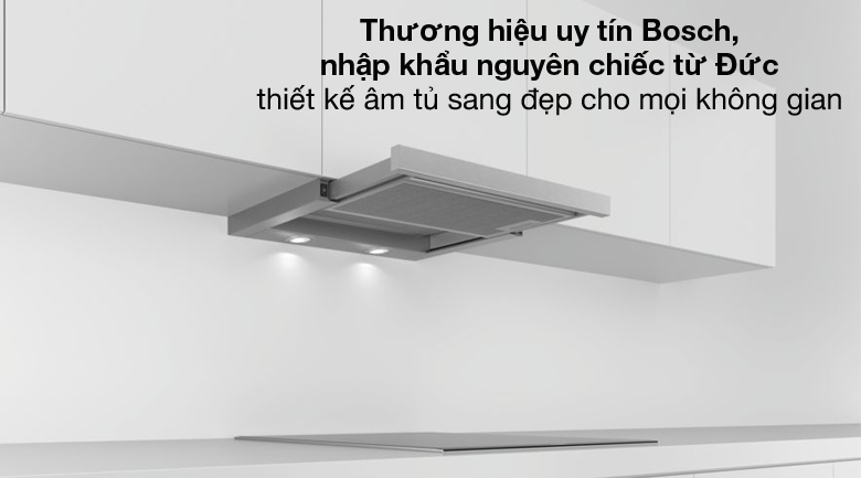 Với kích thước chiều ngang chỉ 59.8 cm, máy hút mùi âm tủ Bosch DFL064W53B thiết kế nhỏ gọn, phù hợp với mọi không gian bếp, từ nhỏ đến vừa.