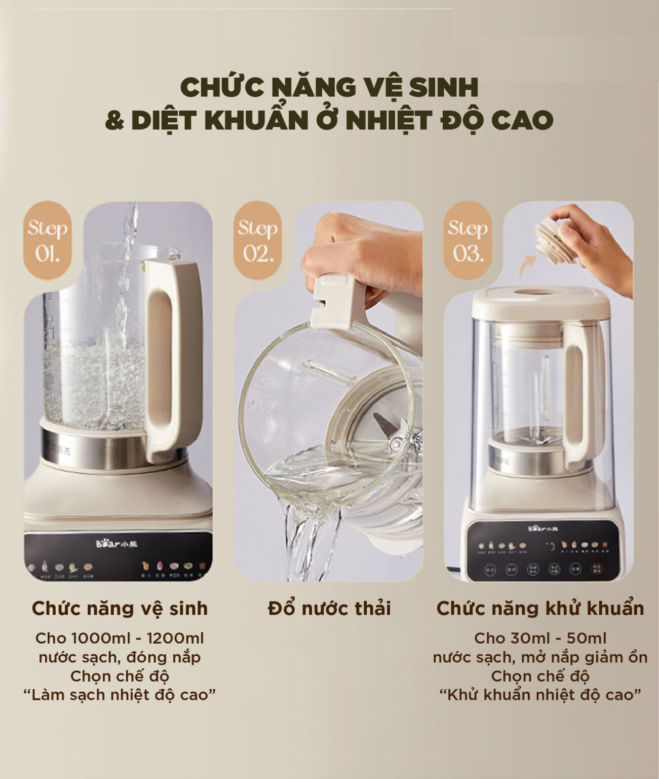 Hướng dẫn sử dụng chức năng tự vệ sinh Máy Làm Sữa Hạt Đa Năng Bear PBJ-D08T1