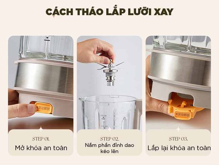 Nhờ lưỡi dao 6 cánh bằng thép không gỉ thiết kế xay đa chiều, thực phẩm được xay mịn mà không làm mất chất dinh dưỡng, mang đến những ly sữa hạt thơm ngon, sánh mịn.