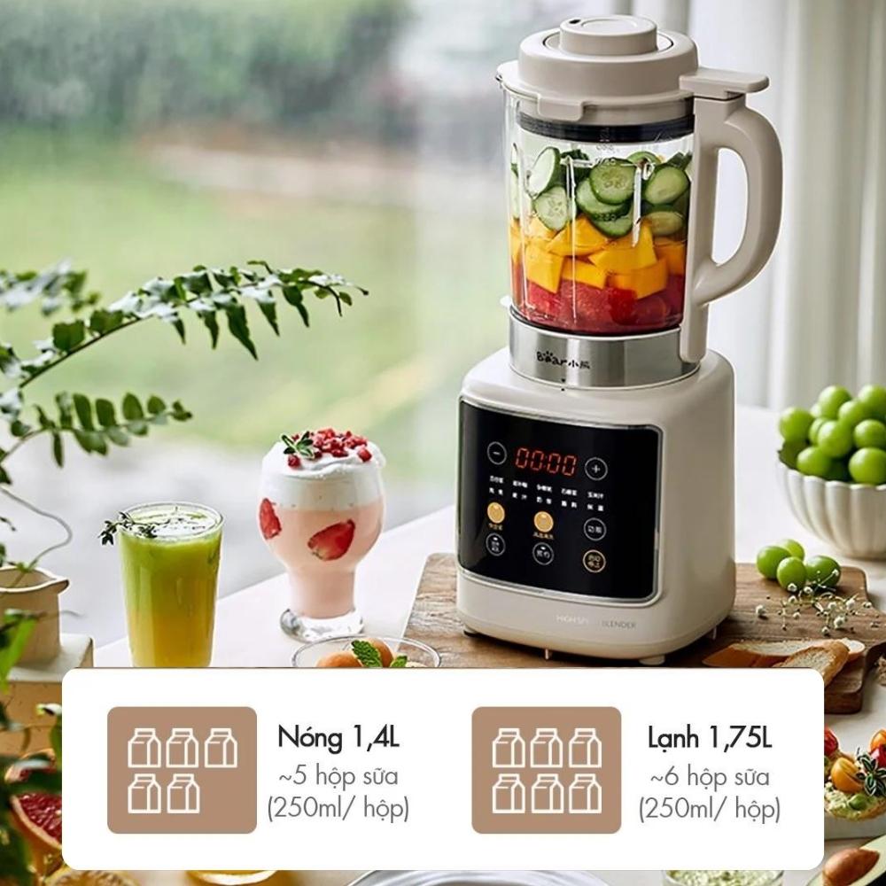 Máy làm sữa hạt đa năng Bear PBJ-D10T1 được thiết kế với dung tích lớn, cho phép bạn nấu nóng 1.4L và nấu lạnh 1.75L, phù hợp với mọi nhu cầu sử dụng. Chế biến các loại thực phẩm như cháo dinh dưỡng cho bé, sữa hạt hảo hạng, hay nước trái cây tươi ngon, mà không gặp bất kỳ trở ngại nào.