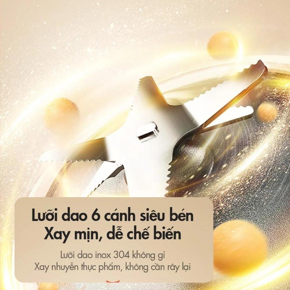 - Lưỡi dao Inox 6 cánh sắc bén, quay được 3500 vòng/ phút