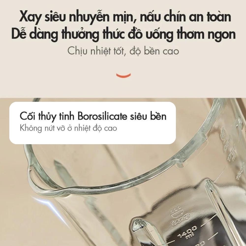 Chất liệu đẳng cấp Cối thủy tinh Borosilicate siêu bền không nứt vỡ dưới tác động của nhiệt độ cao. Chất liệu an toàn và không chứa BPA đảm bảo sức khỏe gia đình bạn luôn được ưu tiên hàng đầu.