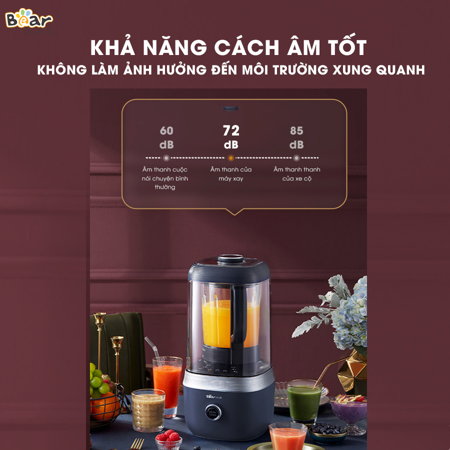 - Âm thanh khi xay chỉ 72dB không ảnh hưởng tới môi trường xung quanh
