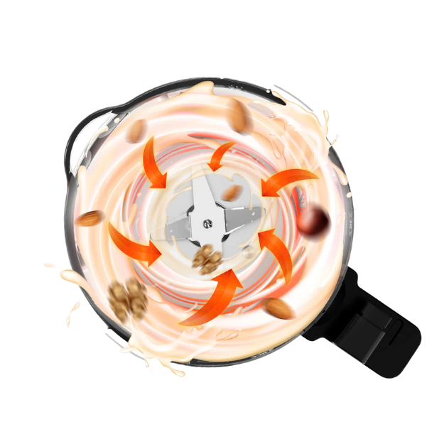 Kết hợp cùng motor hiệu suất cao và cấu trúc lưỡi dao inox 6 cánh, sản phẩm giúp nghiền mịn, trộn đều, tạo ra ly sữa hạt sánh mịn hay sinh tố mát lạnh mà không cần lọc lại.