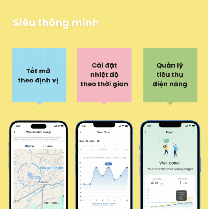 Trọn vẹn giấc ngủ: Chế độ Sleep Curve cho phép bạn tùy chỉnh thời gian, nhiệt độ và tốc độ quạt theo thói quen cá nhân, giúp bạn có giấc ngủ ngon và sâu hơn.