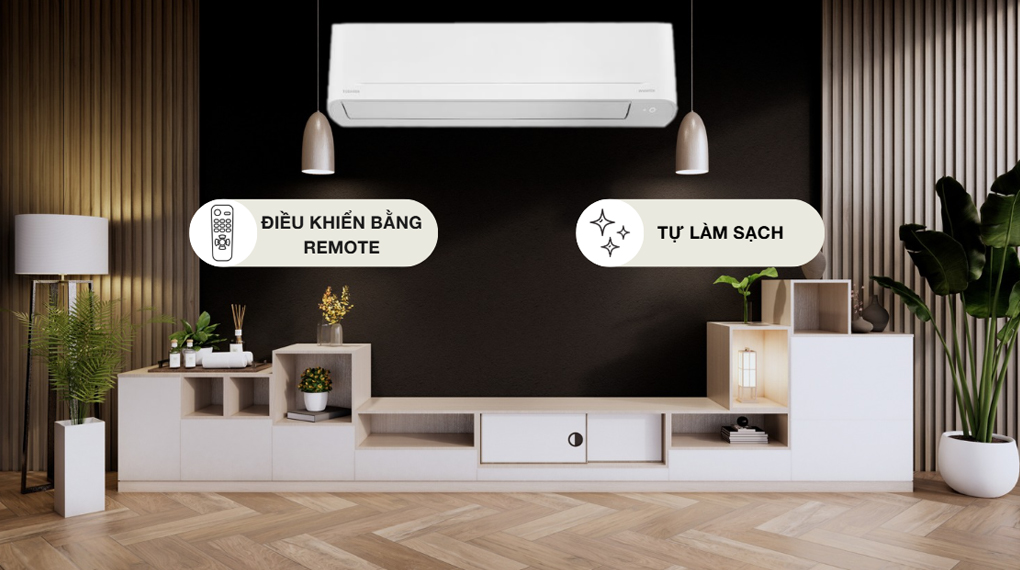 Máy lạnh được trang bị remote điều khiển từ xa tiện lợi với các phím bấm rõ ràng, hỗ trợ thao tác nhanh chóng và dễ dàng. Bên cạnh đó, chức năng tự làm sạch giúp loại bỏ hơi ẩm tồn đọng bên trong dàn lạnh, hạn chế sự phát triển của vi khuẩn và nấm mốc, giữ cho không khí luôn trong lành.