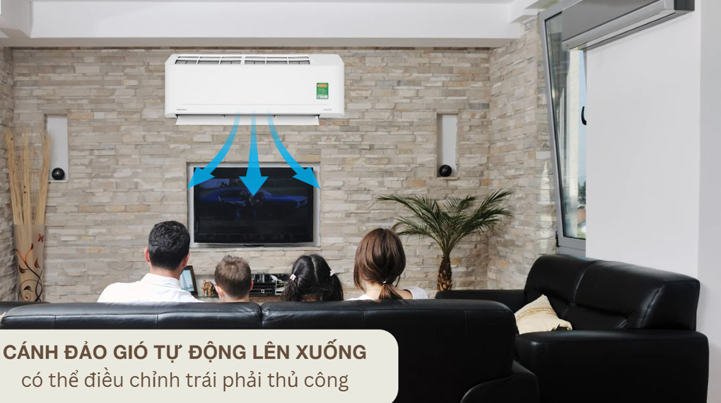 Máy lạnh Toshiba RAS-H18S5KCV2G-V được trang bị cánh đảo gió tự động lên xuống, kết hợp với khả năng điều chỉnh trái phải thủ công, giúp luồng không khí lạnh phân bổ đều khắp phòng, mang lại cảm giác thoải mái tối ưu.
