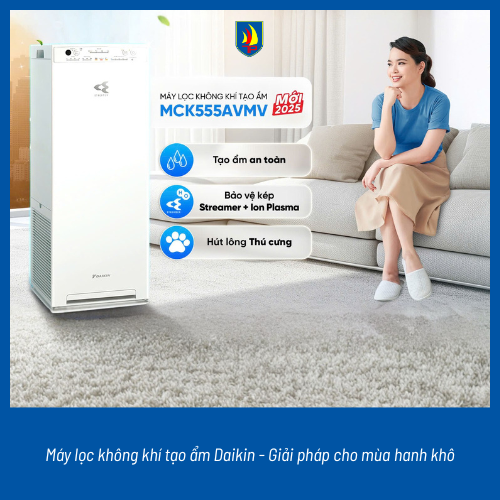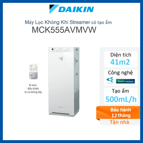 Máy lọc không khí tạo ẩm Daikin MCK555AVMV-W nằm trong phân khúc cao cấp, phù hợp với những gia đình muốn cải thiện cả chất lượng không khí lẫn độ ẩm trong phòng khách, phòng ngủ lớn hoặc không gian mở. Sản phẩm không chỉ lọc sạch bụi bẩn và mùi hôi mà còn tạo ra độ ẩm tự nhiên, giúp cân bằng môi trường sống dễ chịu hơn.