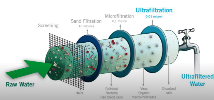 - Lọc kiểu thẩm thấu, màng lọc có kích thước nhỏ khoảng 5-1 micron nên sẽ lọc không hiệu quả.