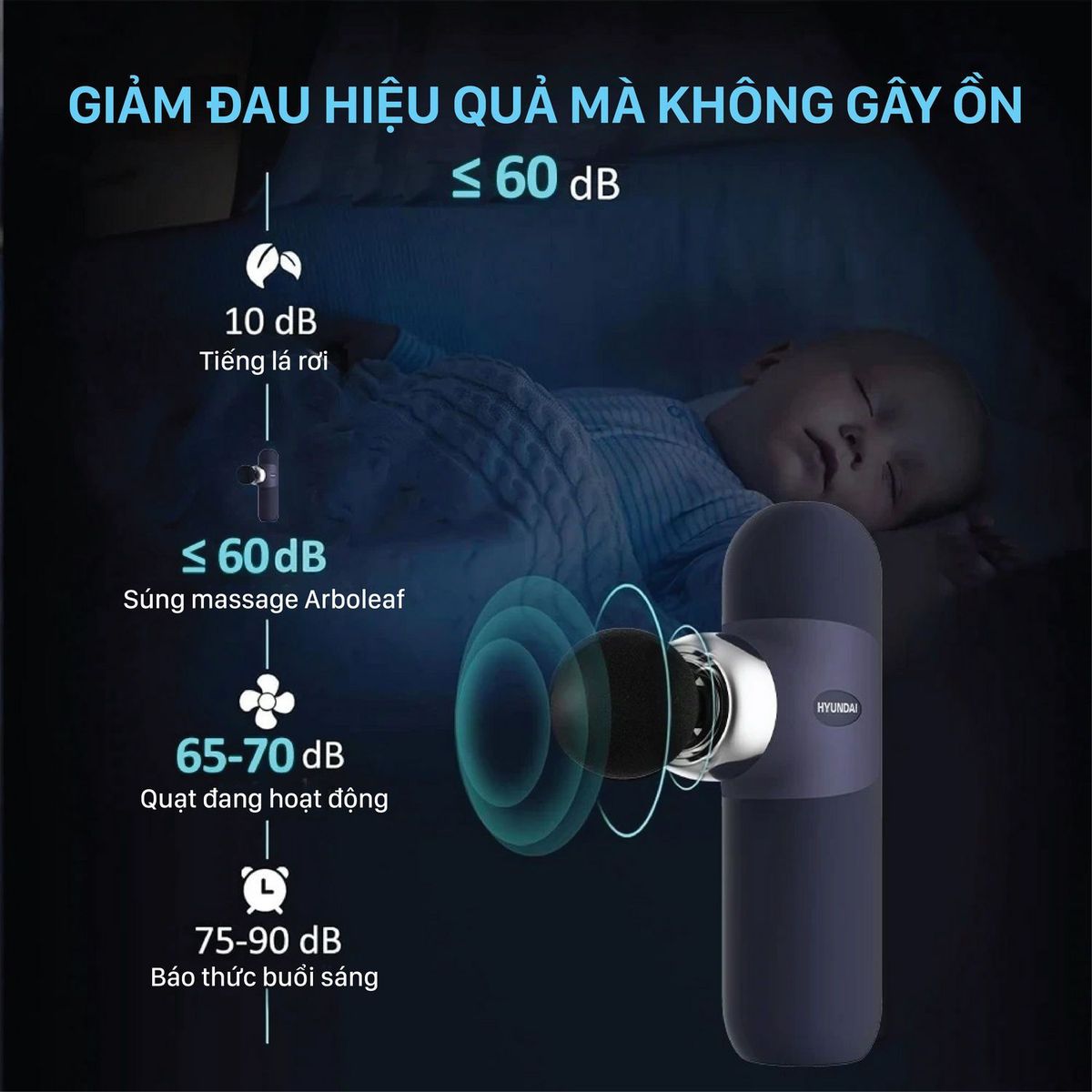 Máy Massage Hyundai sử dụng động cơ DC không chổi than Φ38, vận hành ổn định với độ ồn ≤60dB, nhỏ hơn tiếng quạt điện. Điều này giúp bạn có thể thư giãn mà không gây ảnh hưởng đến người xung quanh.