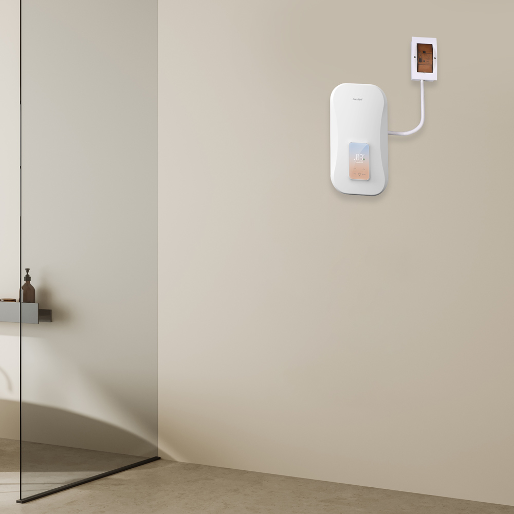 Máy nước nóng Comfee sở hữu thiết kế nhỏ gọn, giúp bạn dễ dàng bố trí ở nhiều vị trí trong phòng tắm. Sản phẩm có tông màu trung tính sang trọng, dễ dàng hòa hợp với không gian nội thất hiện đại.