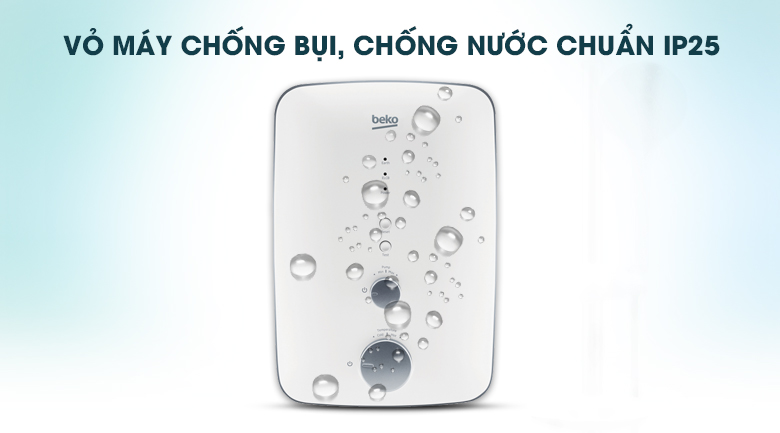 Lớp vỏ chống thấm đạt chuẩn IP25 giúp máy hoạt động bền bỉ trong môi trường ẩm ướt của phòng tắm, kéo dài tuổi thọ sản phẩm theo thời gian.