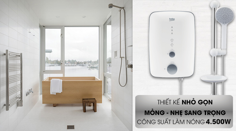 Với công suất 4500W, máy nước nóng Beko hoạt động hiệu quả trong điều kiện nhiệt độ môi trường từ 20°C trở lên, rất phù hợp cho các khu vực phía Nam. Ngoài ra, công suất cao cũng giúp rút ngắn thời gian làm nóng, mang lại trải nghiệm tiện nghi và tiết kiệm thời gian tối đa.