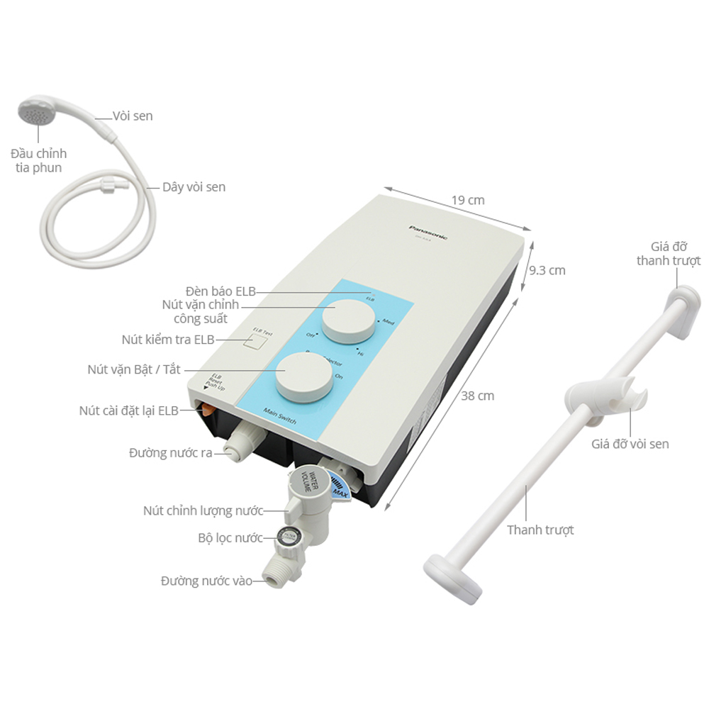 Máy nước nóng trực tiếp Panasonic DH-3JL4VA có công suất lên đến 3500W cùng với cơ chế làm nóng trực tiếp giúp tiết kiệm thời gian, làm nóng cực nhanh và dễ sử dụng.