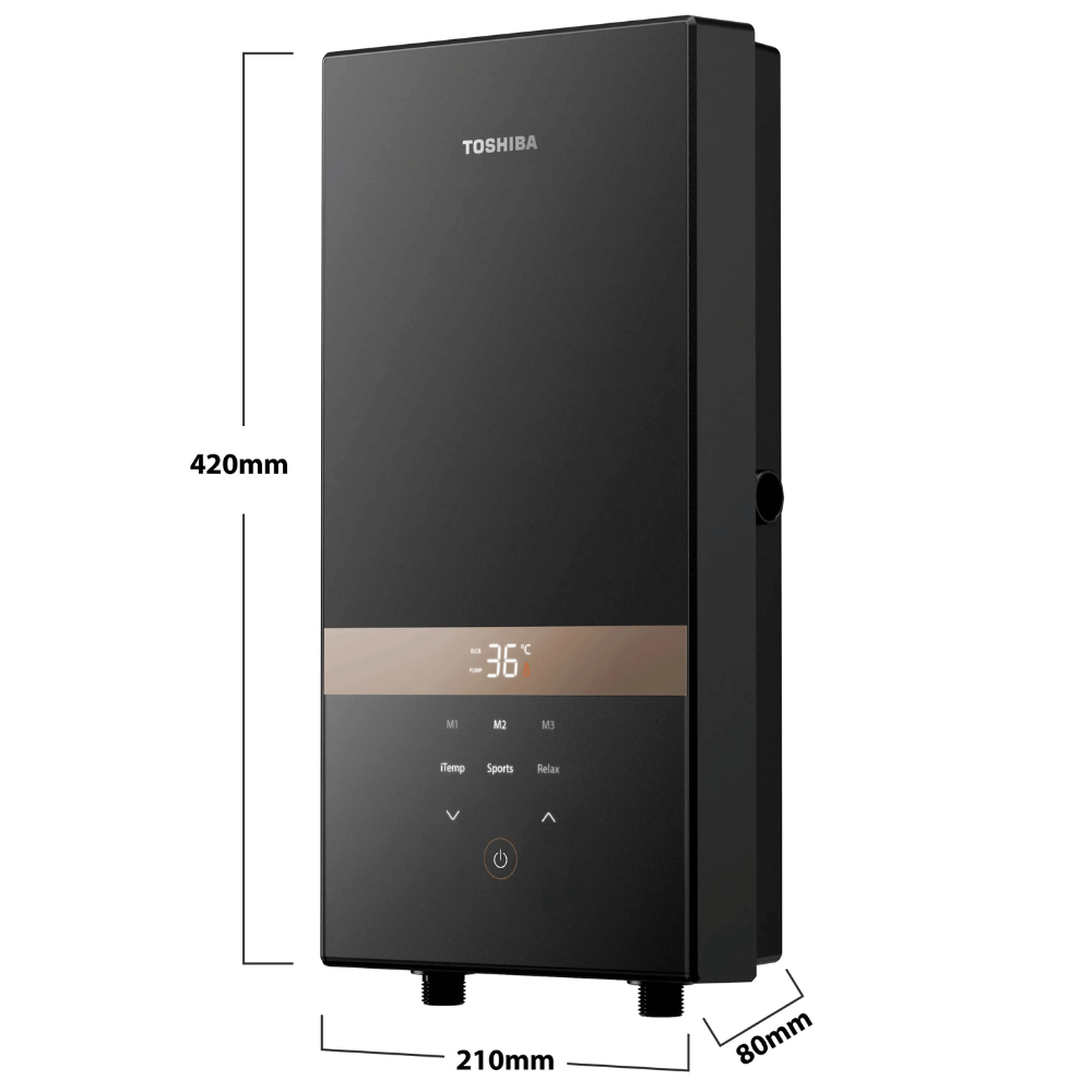 Máy Nước Nóng Trực Tiếp Toshiba TWH-45EMC1PVN(K)-KB sở hữu thiết kế sang trọng, hiện đại cùng hệ thống bảo vệ đa lớp đạt tiêu chuẩn an toàn nghiêm ngặt, mang lại sự an tâm tuyệt đối cho người dùng khi tận hưởng những phút giây thư giãn trong làn nước ấm áp. Với công suất mạnh mẽ 4500W và bơm DC tăng áp lực nước hiệu quả, thiết bị không chỉ tiết kiệm điện mà còn tạo cảm giác sảng khoái như đang trải nghiệm liệu pháp thủy lực chuyên nghiệp tại spa.