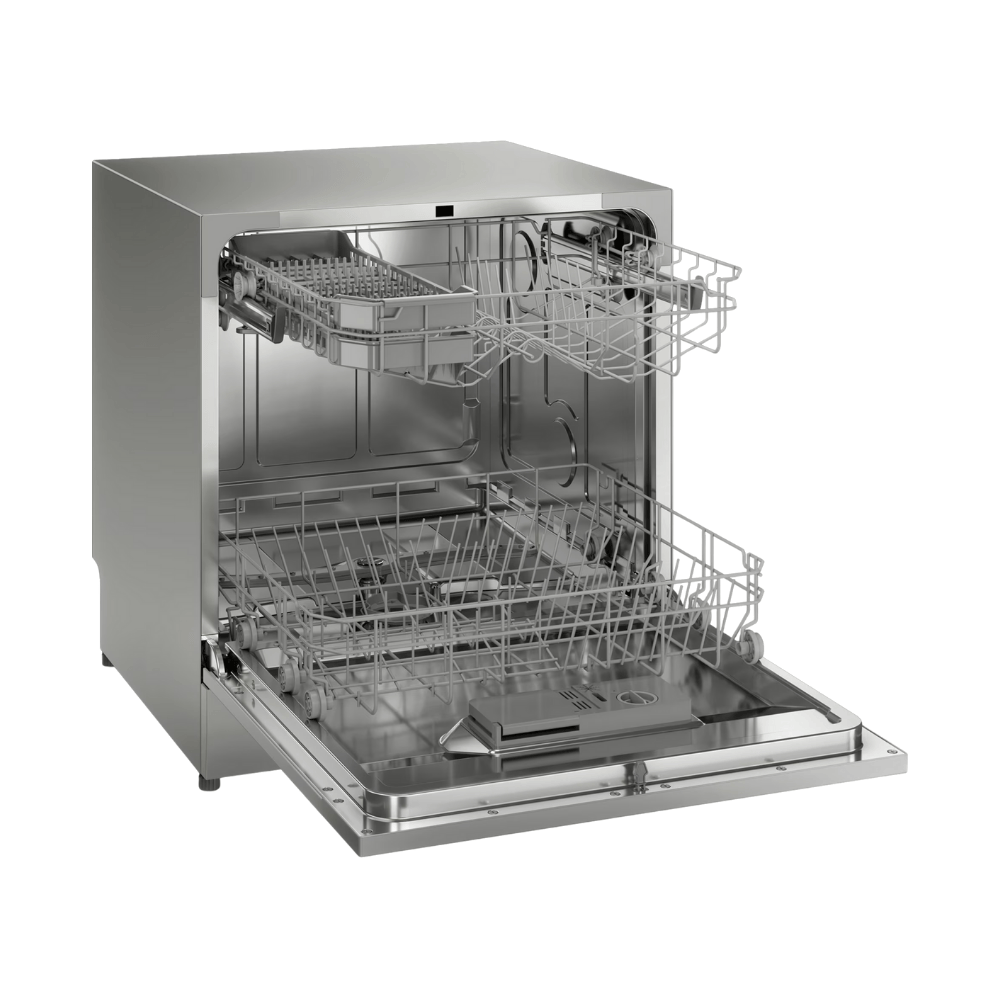 Máy Rửa Chén Electrolux EFC3862MS có kiểu dáng hiện đại, lớp vỏ kim loại sơn tĩnh điện màu bạc sang trọng, bền bỉ và chống bám bẩn. Với kích thước nhỏ gọn (Cao 60.4 cm – Ngang 55 cm – Sâu 50 cm), máy dễ dàng đặt trên bàn bếp hoặc kệ tủ mà không chiếm nhiều diện tích, góp phần nâng tầm không gian bếp.