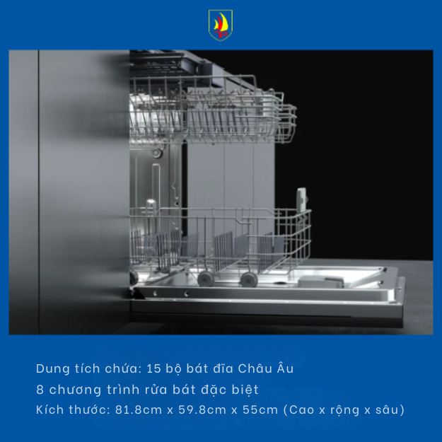 Máy sở hữu thiết kế độc lập, cho phép đặt ở nhiều vị trí khác nhau trong gian bếp mà không phụ thuộc vào hệ tủ có sẵn. Kiểu dáng vuông vức, gọn gàng giúp máy dễ hòa hợp với cả bếp chung cư lẫn nhà phố.