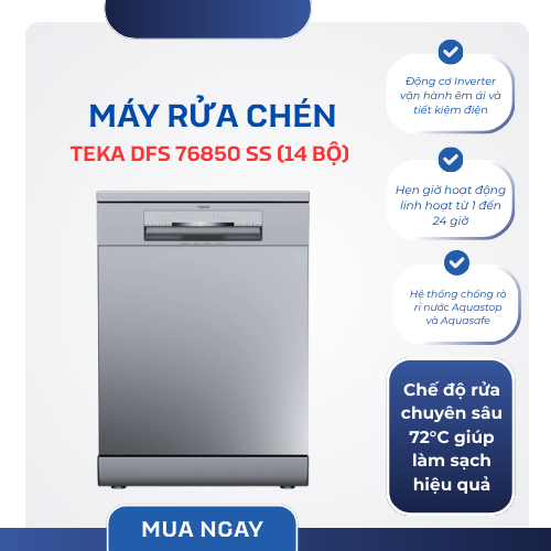 Nếu bạn đang tìm một chiếc máy rửa chén mạnh mẽ, tiết kiệm điện, thiết kế sang trọng và bền bỉ theo thời gian, thì Máy rửa chén Teka DFS 76850 SS (14 bộ) chắc chắn là lựa chọn đáng cân nhắc. Model này không chỉ giúp giảm gánh nặng việc nhà mà còn nâng tầm tiện nghi cho căn bếp hiện đại.