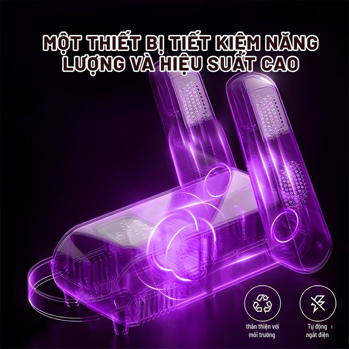 Khử trùng bằng ánh sáng xanh: Loại bỏ mùi hôi, tiêu diệt vi khuẩn, giúp giày luôn sạch sẽ và thơm tho.