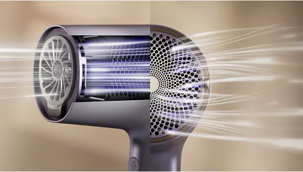 Sấy khô nhanh hơn 20% so với máy sấy 2300W nhờ luồng khí mạnh mẽ và thiết kế cánh quạt cải tiến.