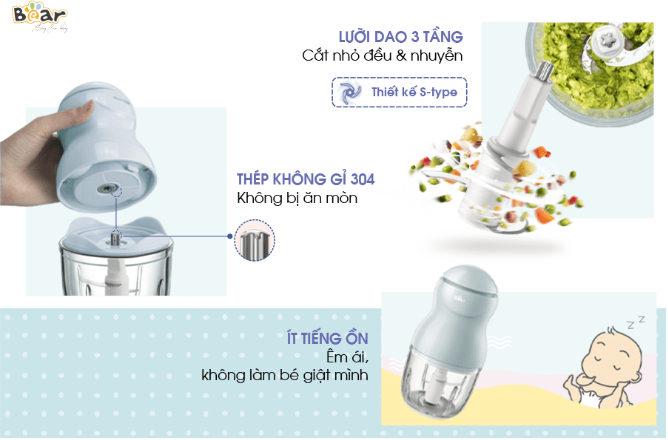 Máy xay ăn dặm Bear GR-B03V2 (0.3 lít) là một công cụ máy xay, máy ép hoàn hảo cho việc chuẩn bị thực phẩm cho bé với thiết kế nhỏ gọn, tiện lợi để mang theo bất cứ nơi nào.