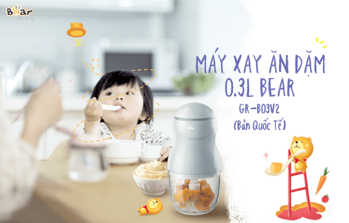 Máy xay ăn dặm Bear GR-B03V2 (0.3 lít) là một sản phẩm gia dụng nhà bếp không thể thiếu trong việc chuẩn bị thực phẩm cho bé yêu của bạn, với tính năng nhỏ gọn và tiện ích mà nó mang lại.