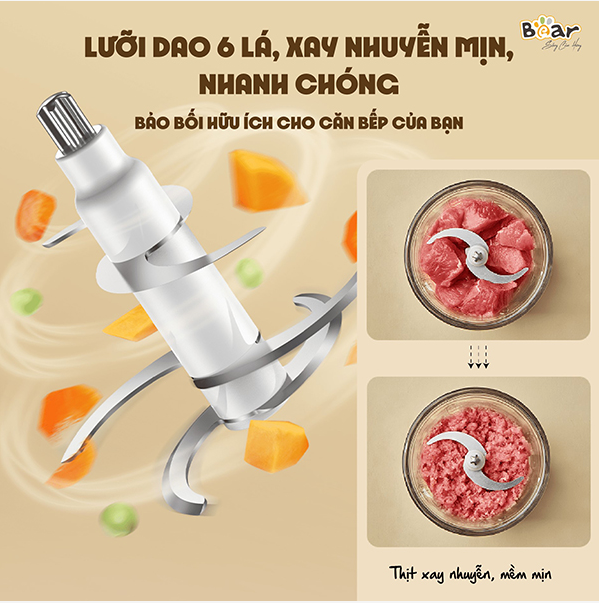 Máy xay thịt Bear QSJ-D02Q1 (0,6 lít) không chỉ là một công cụ tiện ích mà còn là người bạn đồng hành tin cậy trong việc chăm sóc dinh dưỡng cho bé yêu của bạn.