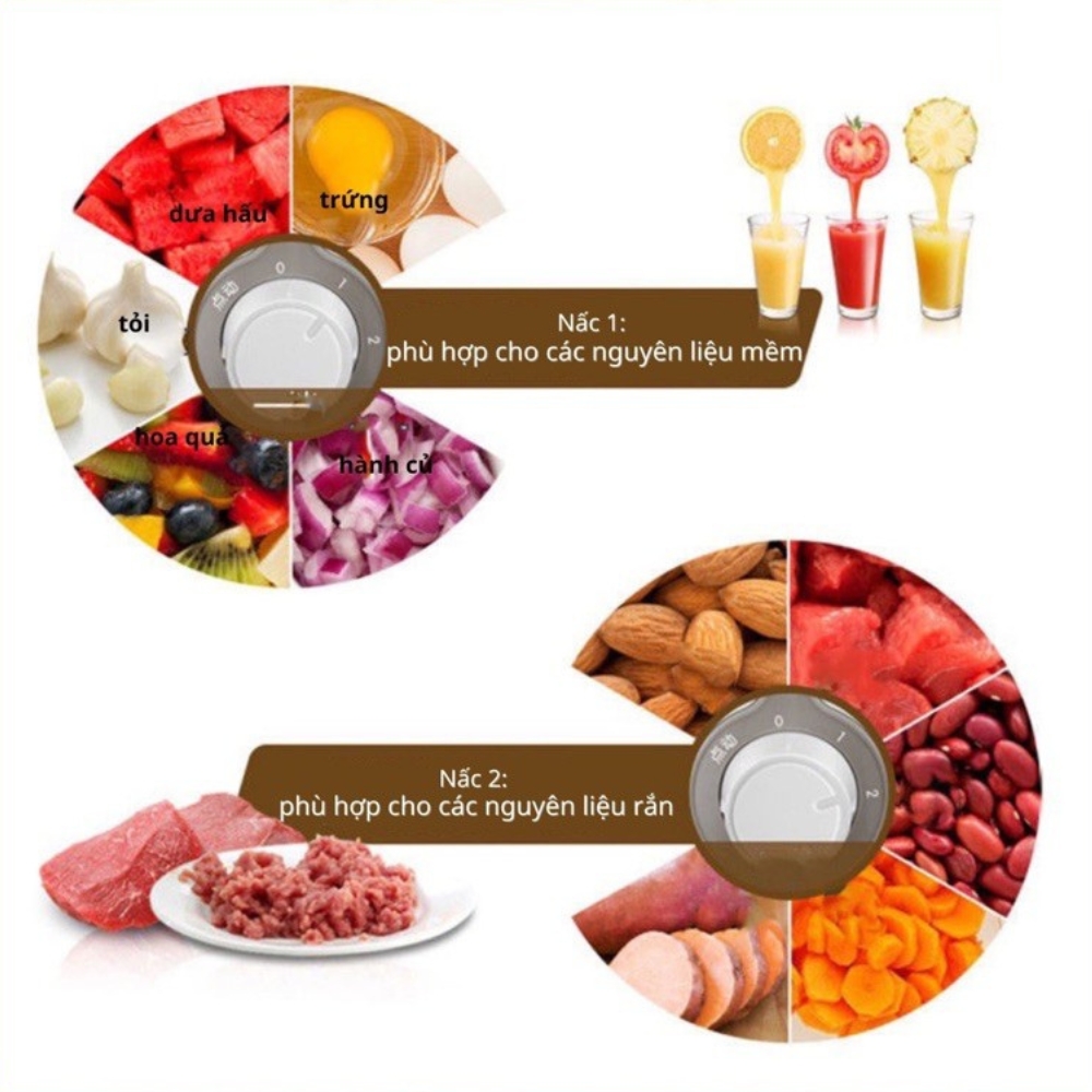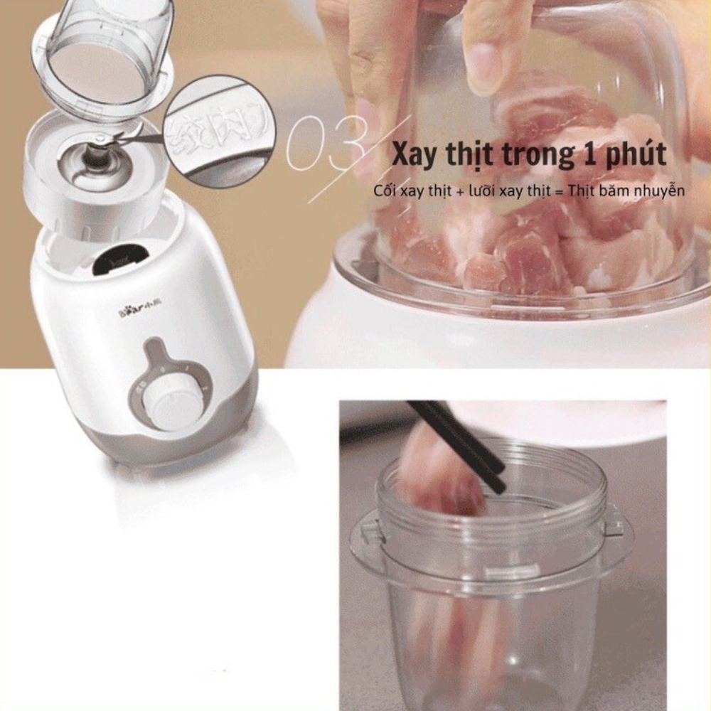 - Trang bị 01 Cối lớn (1200ml) + 02 Cối nhỏ xay thịt, xay khô (100g)