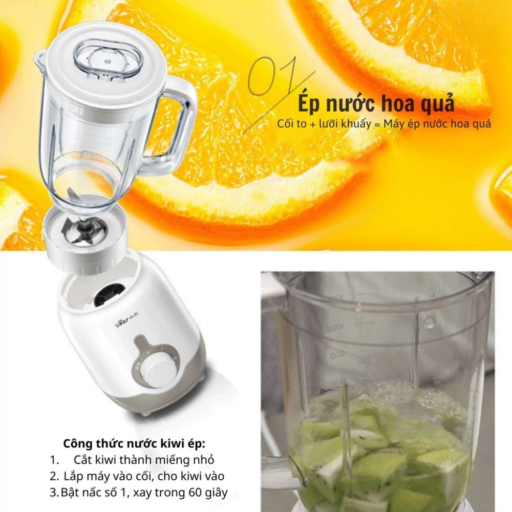 Máy xay sinh tố đa Năng Bear LLJ-B12K1 được trang bị cốc xay chính lớn kèm theo 2 cối xay phụ giúp bạn dễ dàng và thuận tiện chế biến nhiều loại thực phẩm thơm ngon, bổ dưỡng cho gia đình.