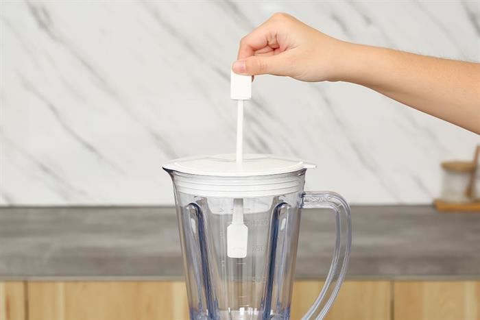 Kết hợp cùng 4 rãnh nổi trong cối, nguyên liệu được đảo trộn liên tục, không vón cục, cho ly sinh tố mịn màng.