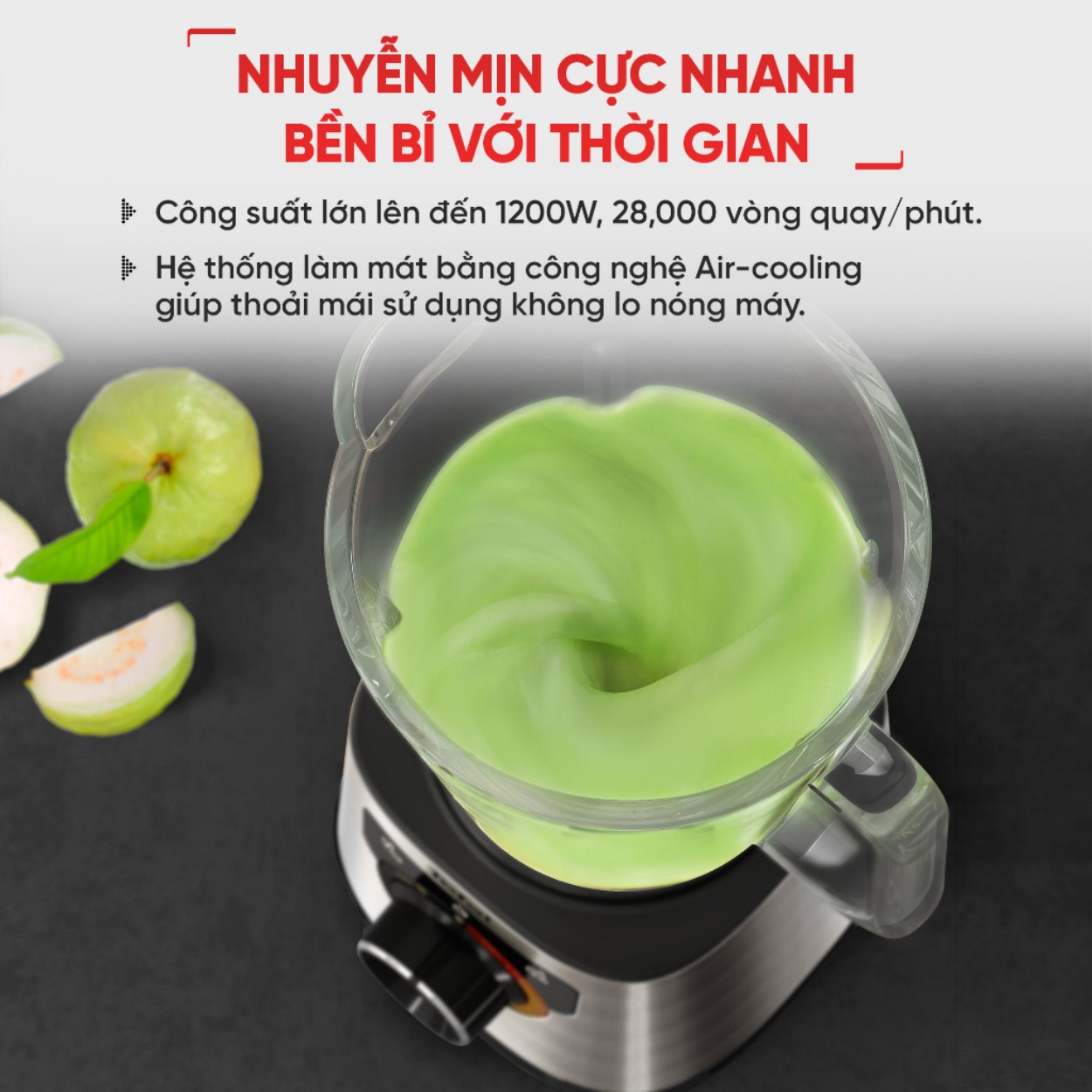 - 3 Chế độ xay: xay đá, sinh tố, tự động vệ sinh, hệ thống làm mát tự động