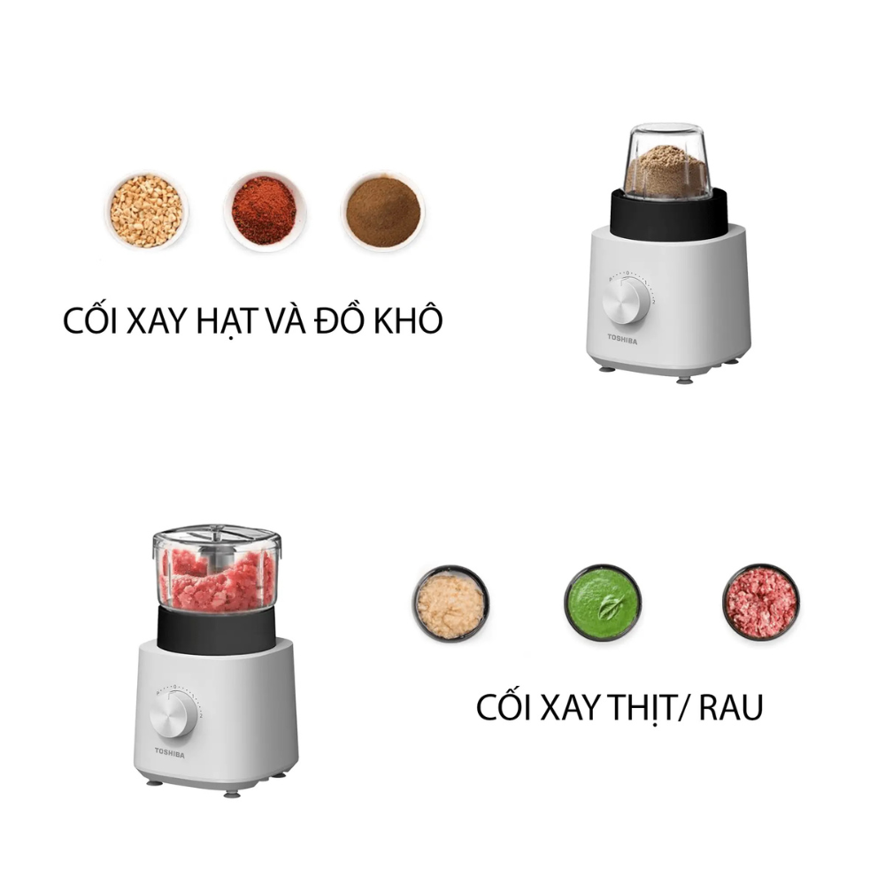 Không chỉ có cối xay sinh tố 1.5L, Máy xay sinh tố Toshiba BL-70GR1UV còn đi kèm cối xay phụ giúp nghiền hạt, gia vị, cà phê hay thậm chí xay thịt và rau củ.