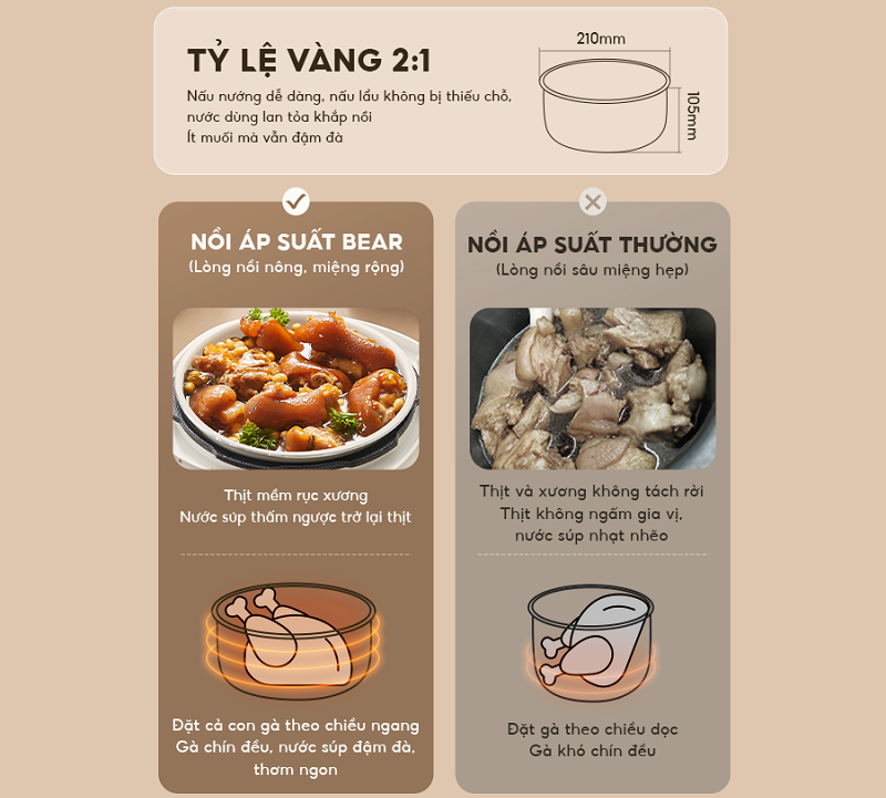 Lòng nồi tỉ lệ vàng giúp nấu nướng dễ dàng