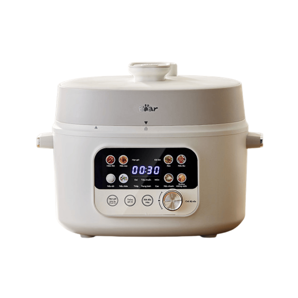 Nồi áp suất điện Bear 4L SB-AS40W tự động điều chỉnh áp suất theo từng giai đoạn nấu, giúp món ăn chín mềm tan nhưng vẫn giữ trọn dưỡng chất và hương vị tự nhiên.