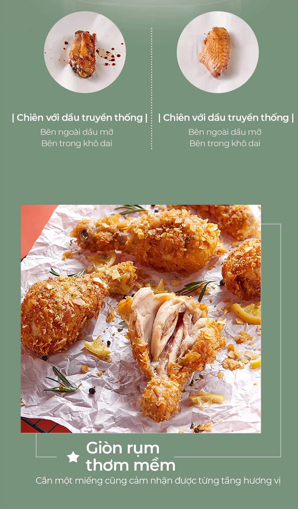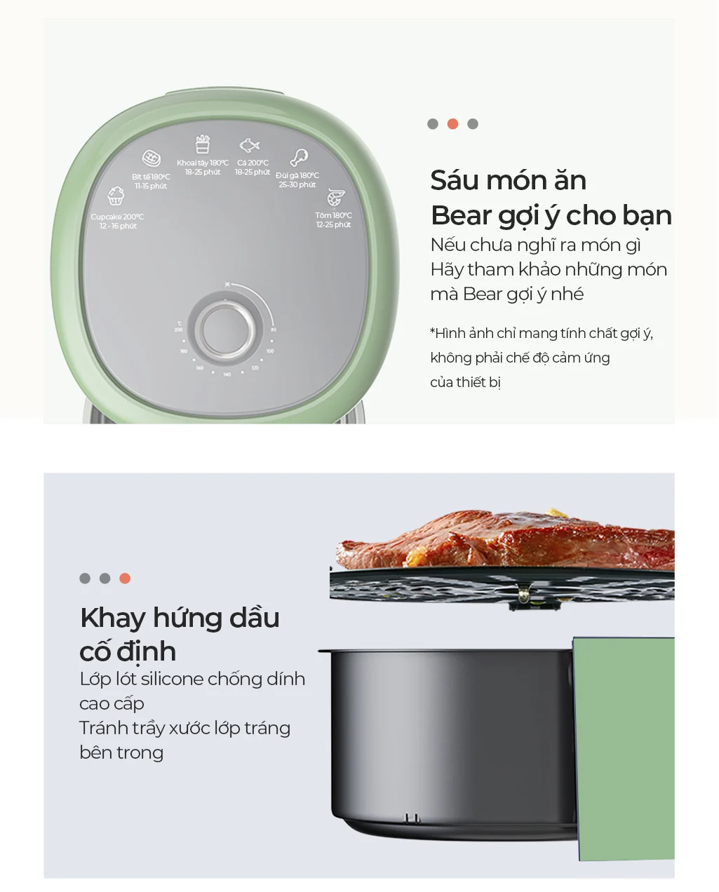 Nồi chiên không dầu Bear QZG-B14D1 có khả năng làm nóng nhanh và đều nhờ vào khoang chứa thực phẩm làm bằng kim loại. Kỹ thuật làm nóng 360 độ giúp thực phẩm chín đều, giữ nguyên hương vị và dinh dưỡng.