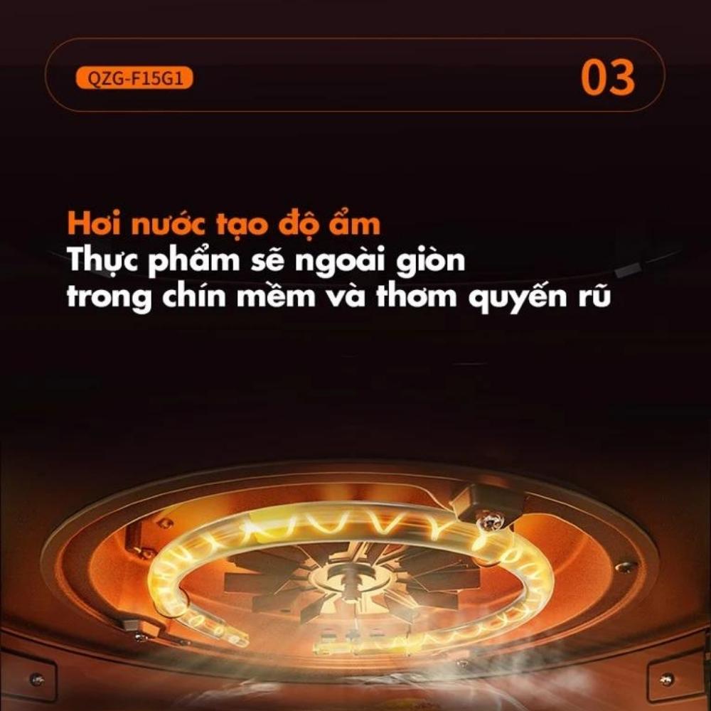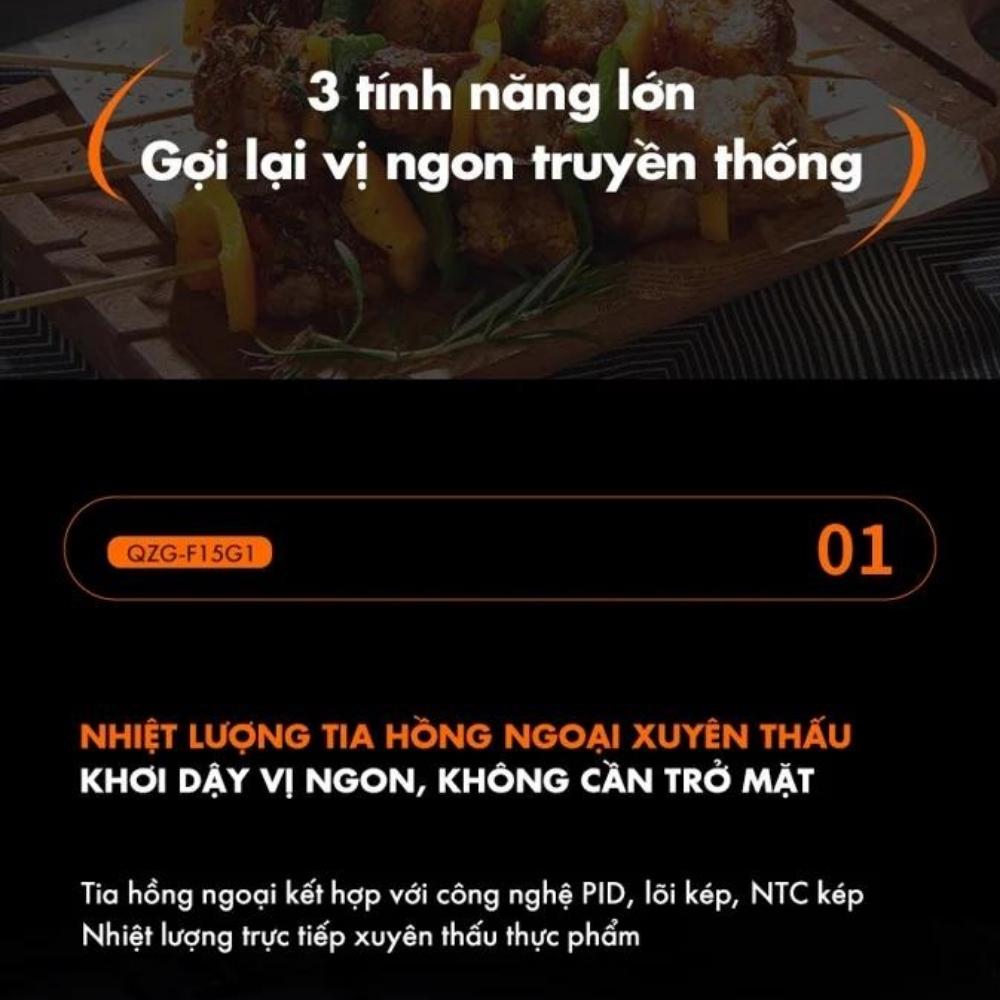 Tia hồng ngoại kết hợp với công nghệ PID. Lõi kép. NTC kép. Nhiệt lượng trực tiếp xuyên thấu thực phẩm. Giúp thực phẩm chín đều thức ăn tươi mềm, đậm vị.